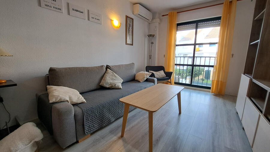 Apartamento en 1ª planta en Apartaclub La Barrosa con un dormitorio, salón, cocina, baño y terraza, situado a 3km de la Playa de la Barrosa, con WIFI, aire acondicionado y plaza de parking. La urbanización cuenta con una piscina de adulto, una infantil, pista de tenis y pádel y zonas ajardinadas. El apartamento se alquila con ropa de cama y toallas según el número de ocupantes previstos y completamente equipado para su uso.