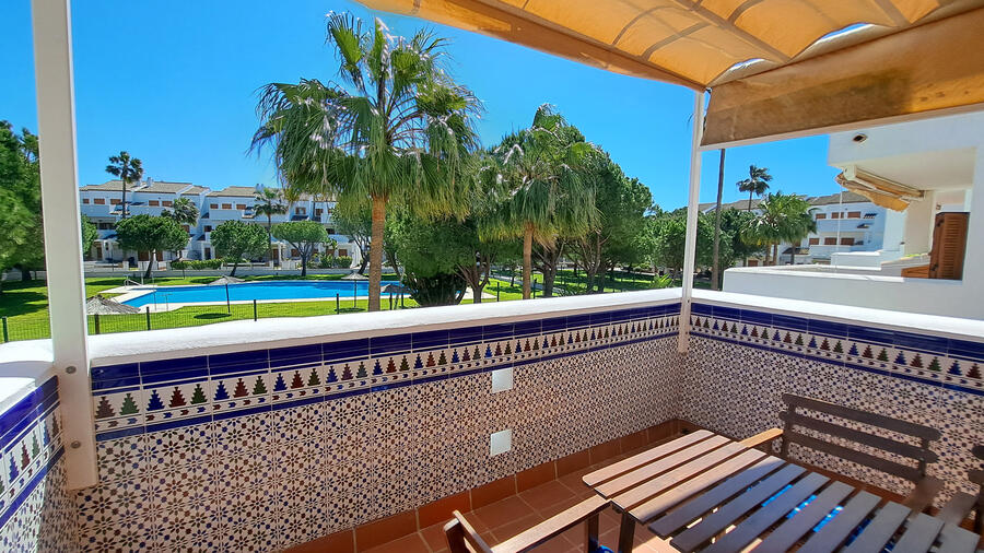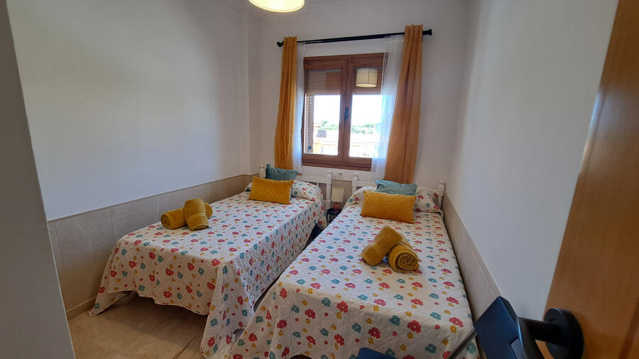 Apartamento en Carrajolilla en 1ª planta, con dos dormitorios situado a un km. de la Playa de la Barrosa, con terraza, vistas a la piscina, y plaza de parking. La urbanización cuenta con piscina de adultos, piscina infantil, pista de paddle y zonas ajardinadas. El apartamento se alquila con ropa de cama y toallas según el número de ocupantes previstos y completamente equipado para su uso.